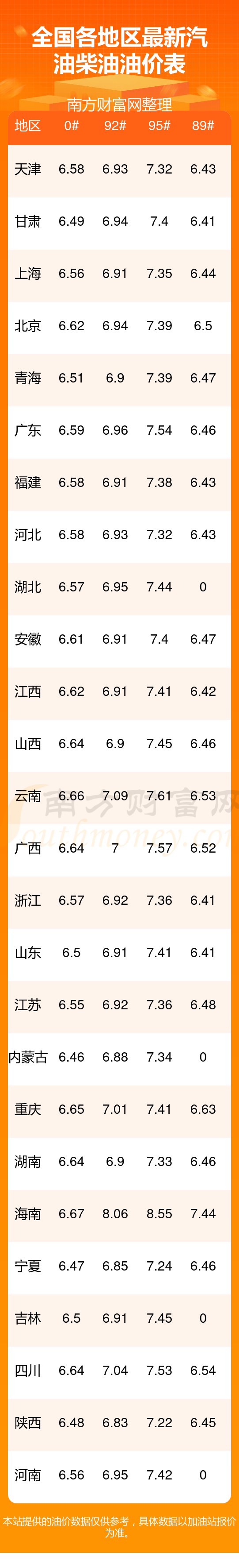 油價數(shù)據(jù)僅供參考,請以您所在地區(qū)的各加油站報價為準。