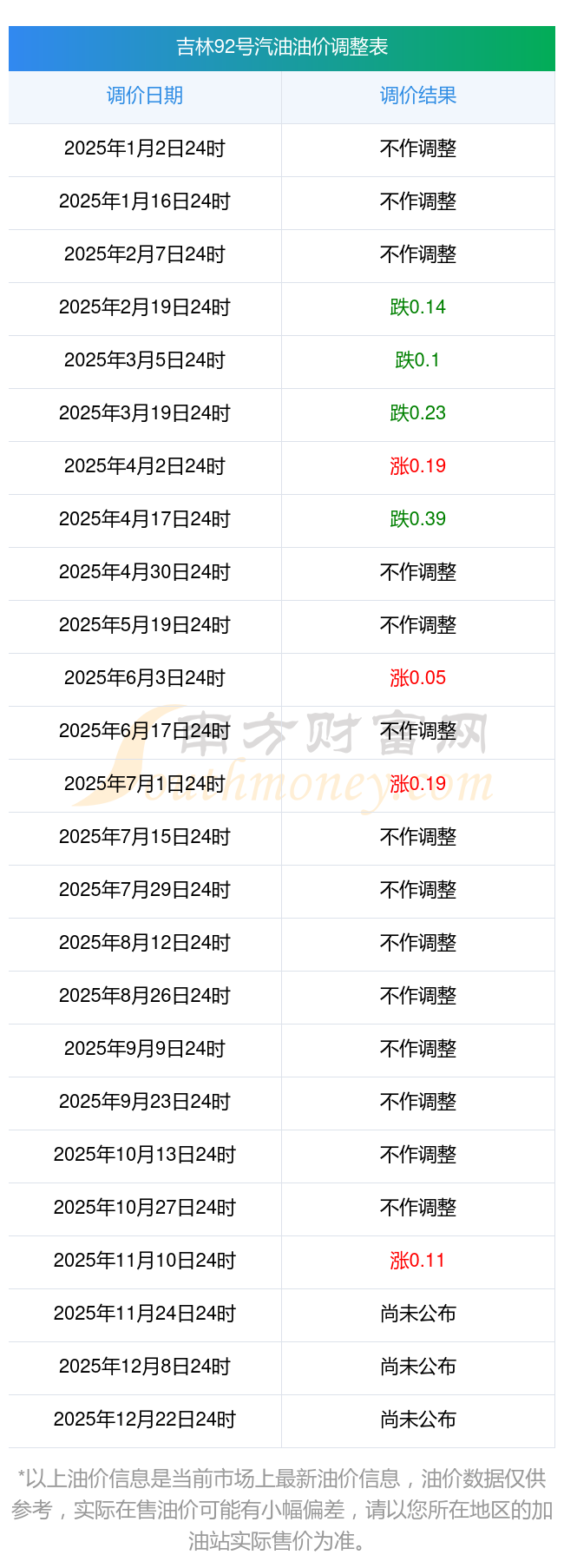 2025年吉林最新汽油價(jià)格調(diào)整一覽表