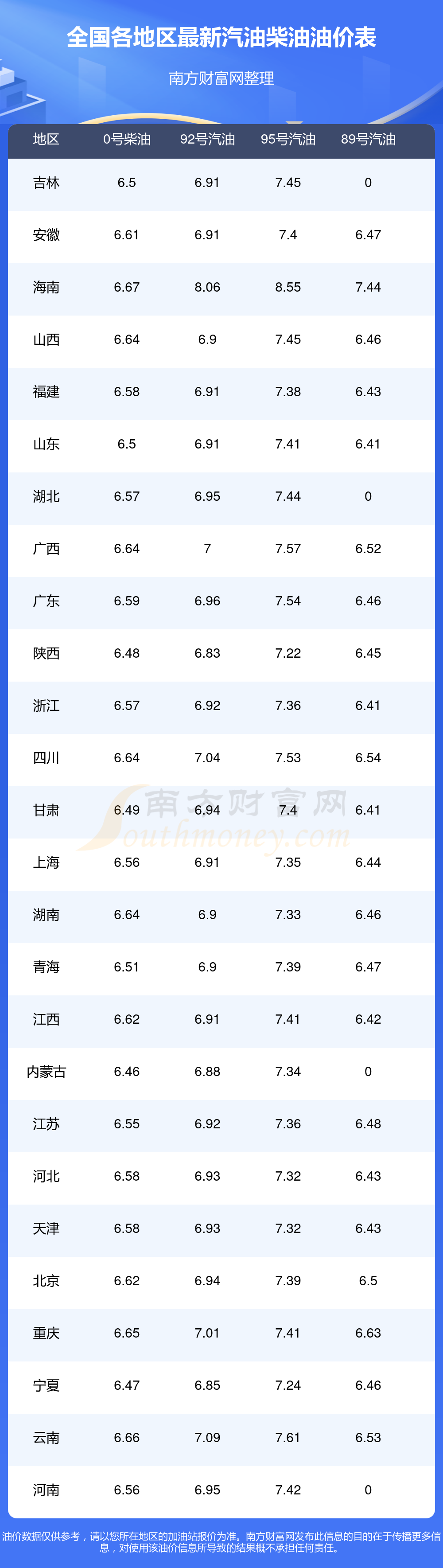 全國(guó)92號(hào)汽油平均價(jià)格為:7元每升,其中,最低為陜西,價(jià)格6.83元/升,最高為海南,價(jià)格8.06元/升。
