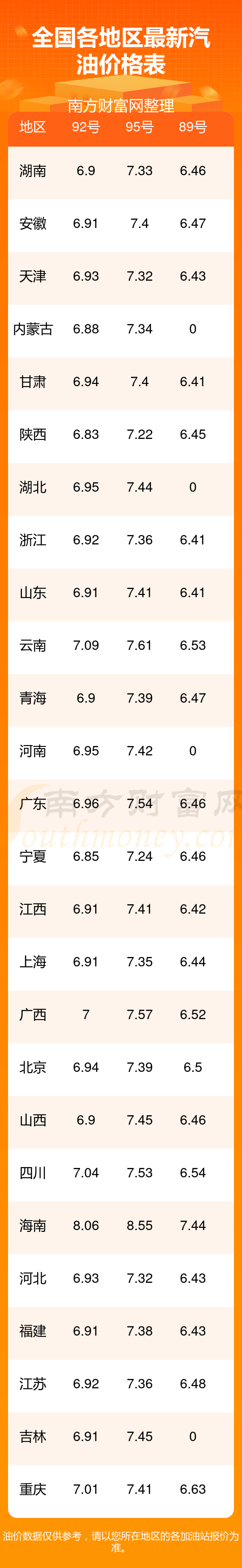 油價數(shù)據(jù)僅供參考,請以您所在地區(qū)的各加油站報價為準(zhǔn)。