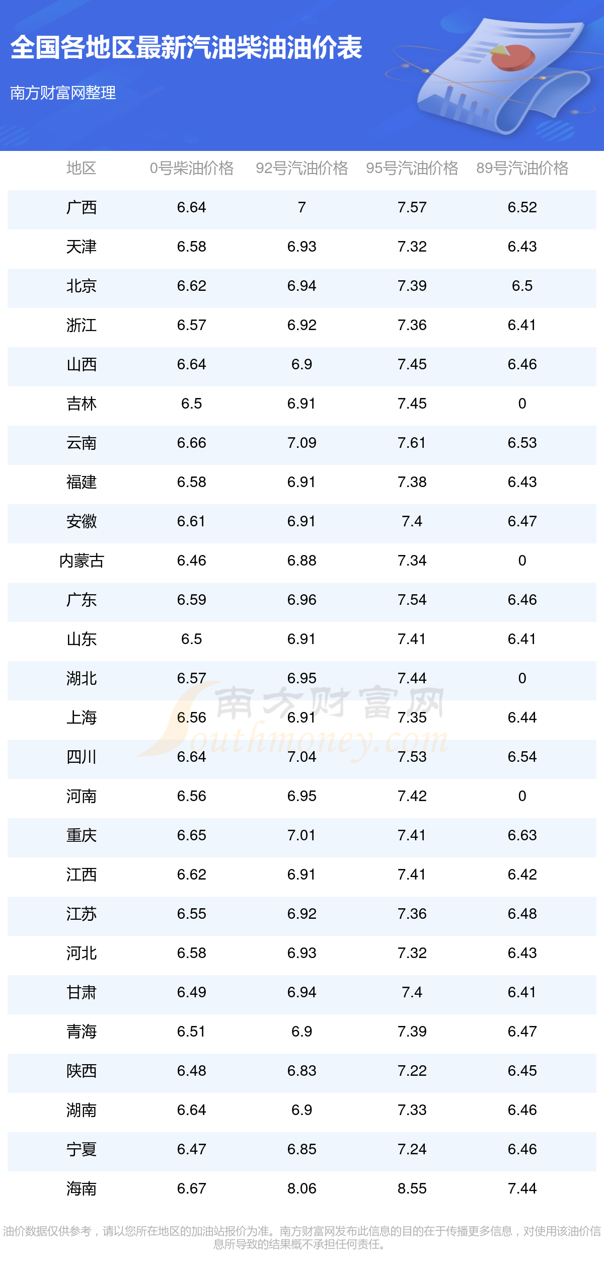 2025年全國各地油價(jià)調(diào)整及最新汽油價(jià)格表((11月17日))
