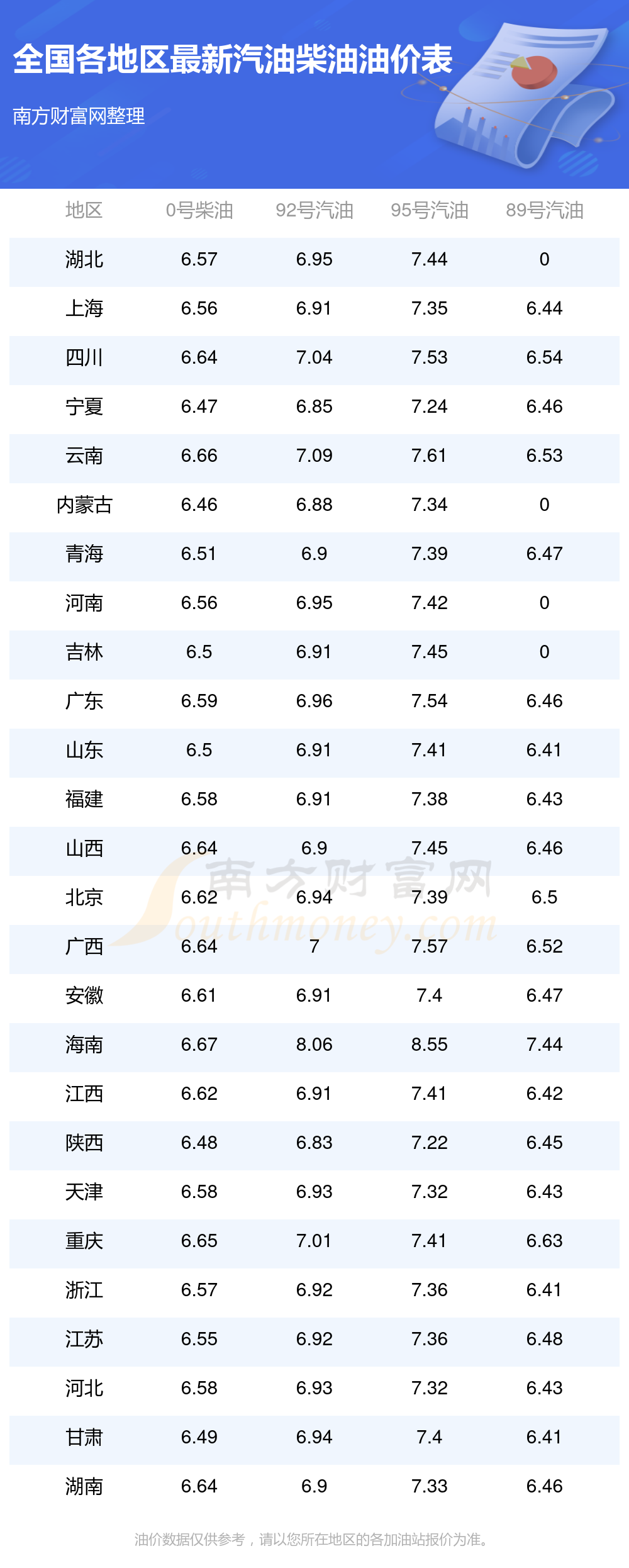 油價數(shù)據(jù)僅供參考,請以您所在地區(qū)的加油站報價為準(zhǔn)。南方財富網(wǎng)發(fā)布此信息的目的在于傳播更多信息,對使用該油價信息所導(dǎo)致的結(jié)果概不承擔(dān)任何責(zé)任。