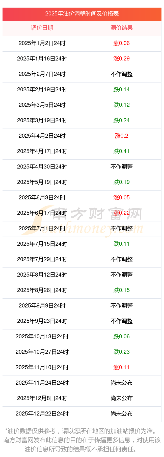 2025年11月17日全國油價調(diào)整時間及價格一覽表