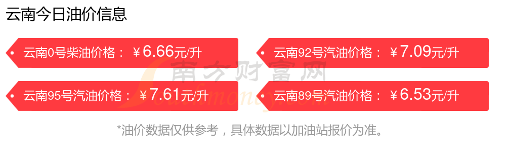 2025年云南汽油價格一覽表