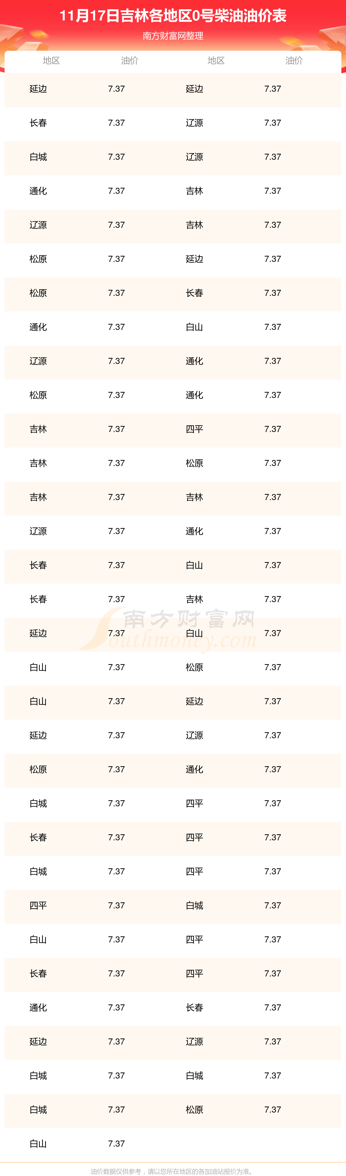 2025年11月17日吉林0號(hào)柴油最新價(jià)格一覽表