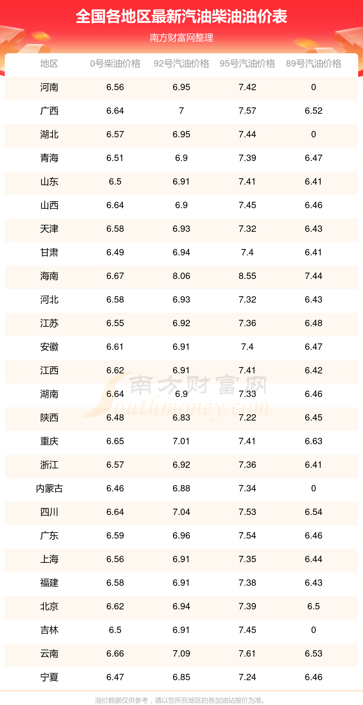 (11月17日)全國油價一覽表