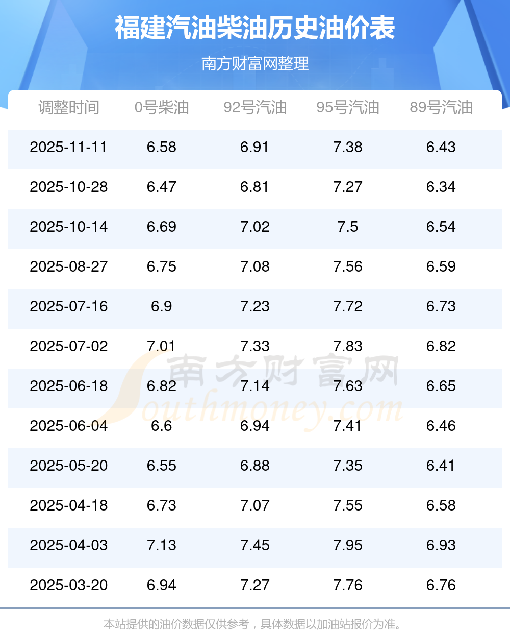 (11月17日)92、95號(hào)汽油價(jià)格一覽表
