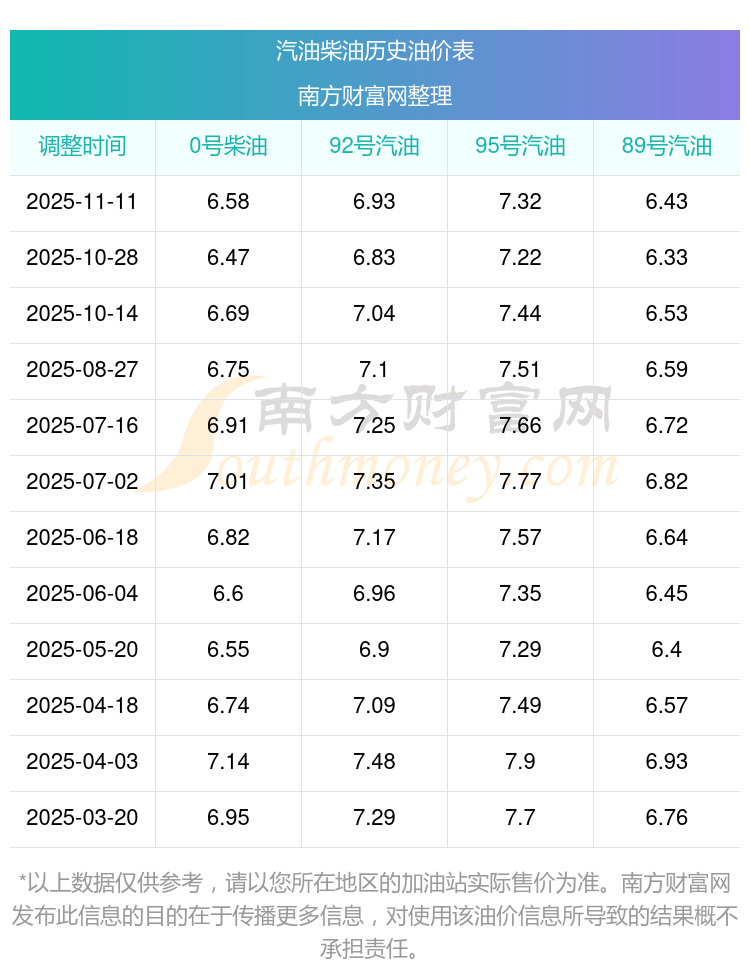 2025年92號汽油價格一覽表