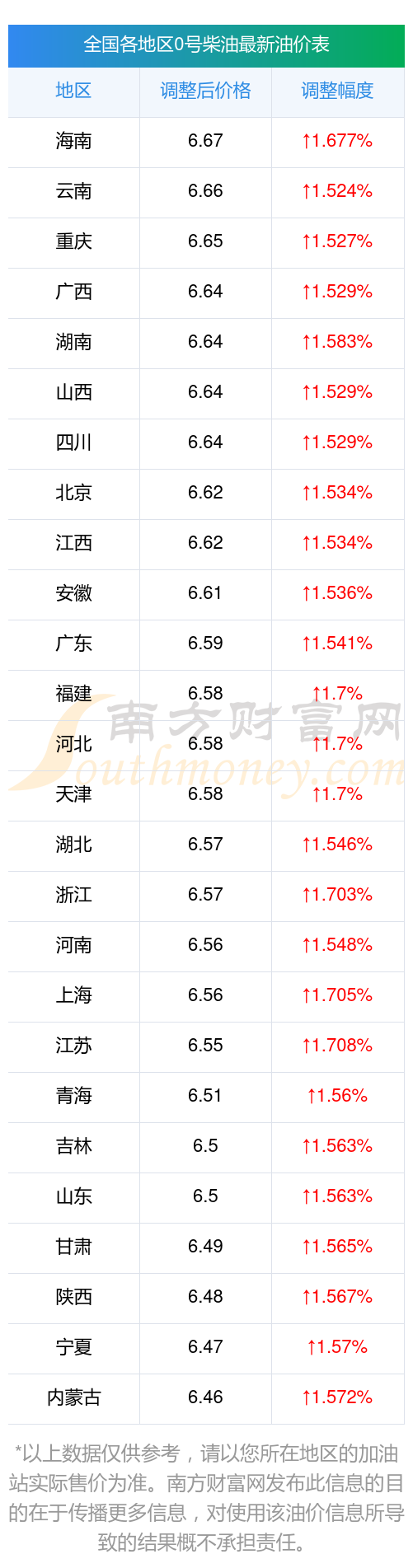 油價數(shù)據(jù)僅供參考,請以您所在地區(qū)的加油站報價為準。南方財富網(wǎng)發(fā)布此信息的目的在于傳播更多信息,對使用該油價信息所導(dǎo)致的結(jié)果概不承擔(dān)任何責(zé)任。