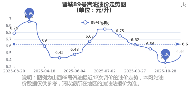 11月17日汽油每升的價格為11月11日調(diào)整后的價格,具體價格如下:92號汽油6.9元;95號汽油7.45元;89號汽油6.46元;0號柴油6.64元。