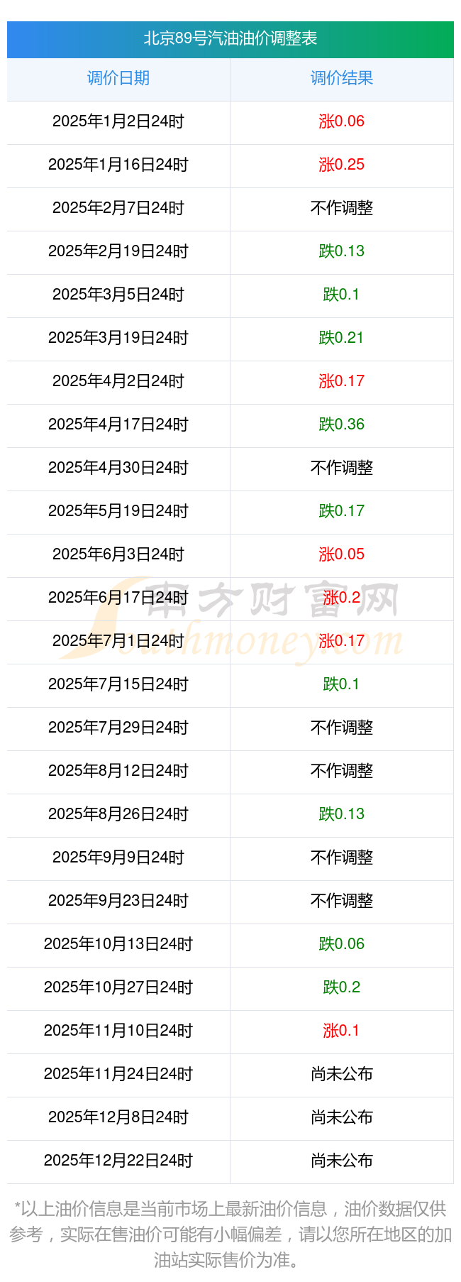 2025年油價(jià)調(diào)整時(shí)間一覽表及價(jià)格