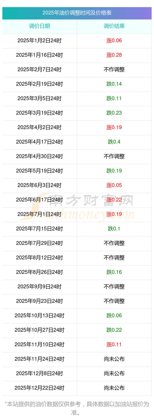 油價調(diào)整最新消息:霸州汽油、柴油11月17日每升的價格為:92號汽油6.93元;95號汽油7.32元;89號汽油6.43元;0號柴油6.58元,本次油價調(diào)整時間是11月11日。霸州下一輪油價調(diào)整時間11月24日24時,距離現(xiàn)在還有7.62天。