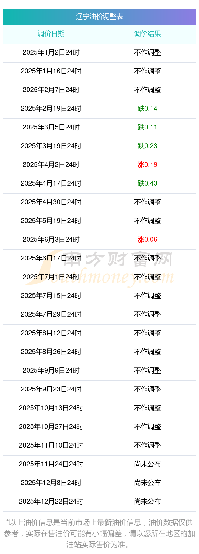 2025年遼寧沈陽油價調(diào)整日歷時間表