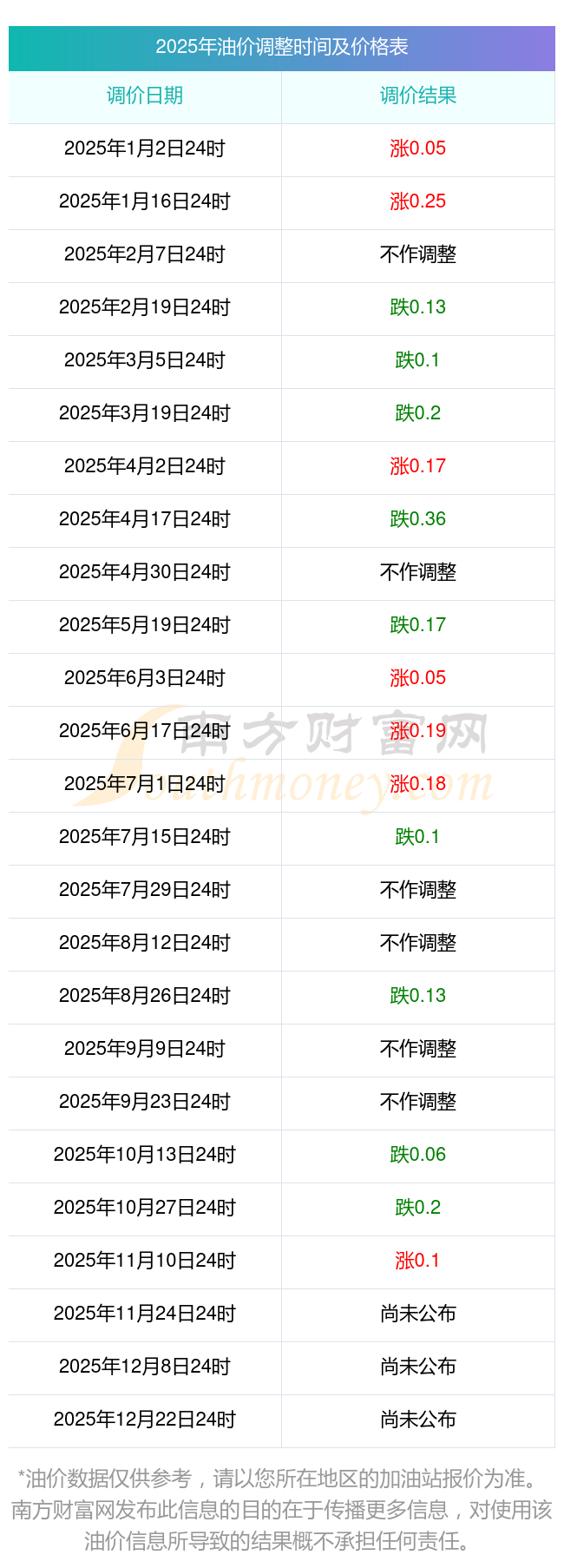 2025年11月17日全國(guó)油價(jià)調(diào)整時(shí)間及價(jià)格一覽表