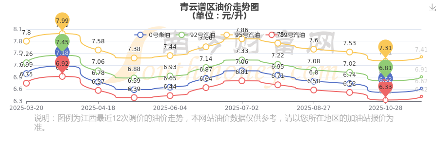 11月17日青云譜區(qū)0號柴油歷史油價走勢圖