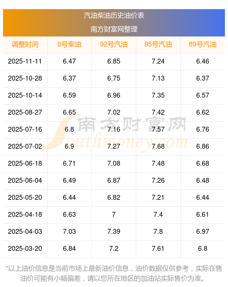 2025年汽油柴油油價(jià)調(diào)整一覽表