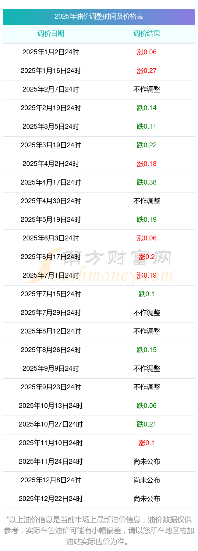 廣東2025年最新汽油柴油調(diào)整時(shí)間表