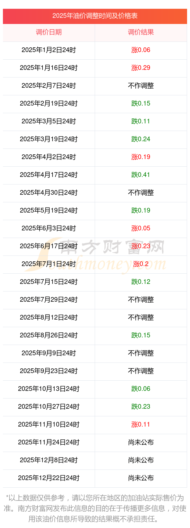 2025年11月18日油價調(diào)整時間及價格一覽表