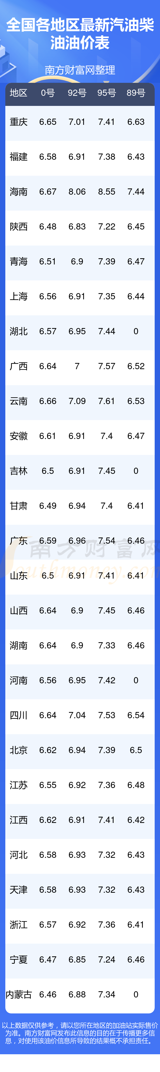 2025年11月18日全國油價(jià)調(diào)整及最新汽油價(jià)格表