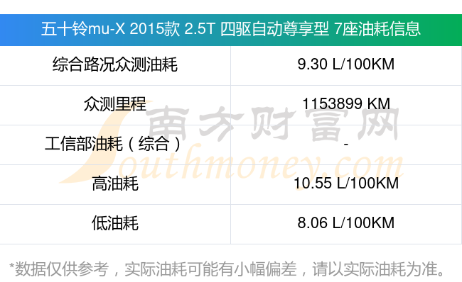 根據多位車主實測得出數據,該車型低油耗為8.06L/100km,高油耗為10.55L/100km,綜合路況眾測油耗為9.30L/100km,工信部綜合油耗為-L/100km。