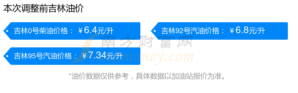 以上數(shù)據(jù)僅供參考,請以您所在地區(qū)的加油站實際售價為準。南方財富網(wǎng)發(fā)布此信息的目的在于傳播更多信息,對使用該油價信息所導致的結果概不承擔責任。