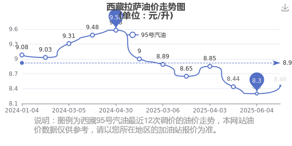 西藏拉薩2025年汽油價格調(diào)整走勢圖
