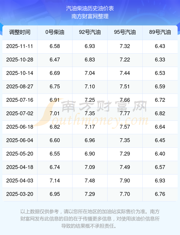 2025年95號汽油價(jià)格一覽表
