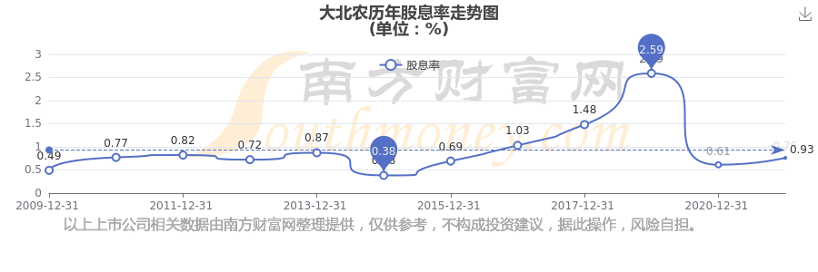 大北農(nóng)歷年股息率走勢(shì)如下圖: