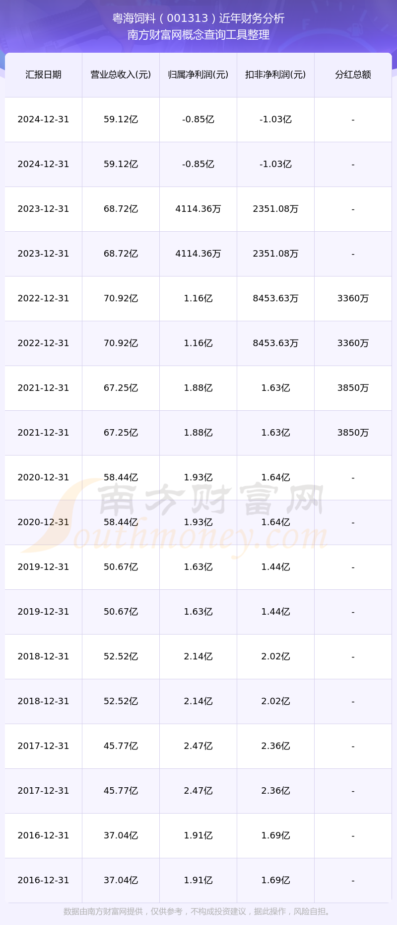2024年報顯示,粵海飼料實現(xiàn)營收59.12億,同比增長-13.98%;凈利潤-8539.2萬,同比增長-307.55%;毛利率10.74%。