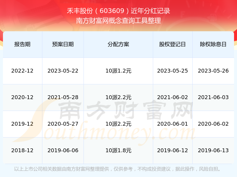 禾豐股份最新一次公布的分紅方案為10派1.2元。本次權(quán)益分派股權(quán)登記日為2023年5月25日,除權(quán)除息日為2023年5月26日,派息日為2023年5月26日。
