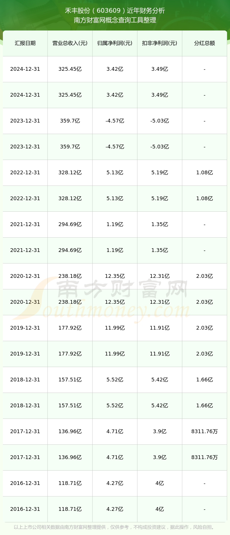 2024年禾豐股份總營收325.45億,同比增長-9.52%;凈利潤3.42億,同比增長174.93%;銷售毛利率6.45%。