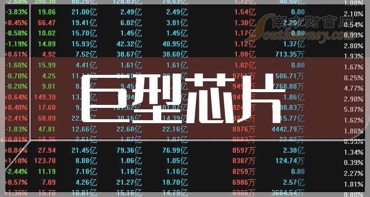巨型芯片概念上市公司中中微公司是唯一一家位于“千億俱樂部”;通富微電、大族激光、源杰科技、芯碁微裝等6家位于“百億俱樂部”;天承科技、德邦科技、沃格光電、美迪凱等4家位于50-100億元之間;