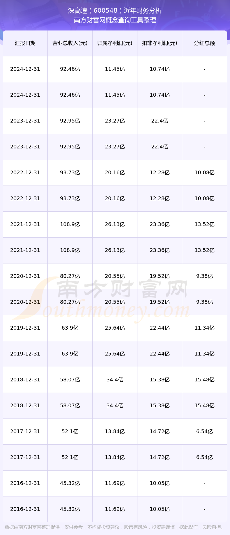 深高速公司2024年實(shí)現(xiàn)營(yíng)收92.46億元,凈利潤(rùn)11.45億元,毛利率31.6%。