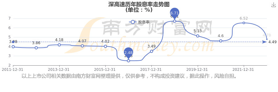 深高速歷年股息率走勢(shì)如下圖: