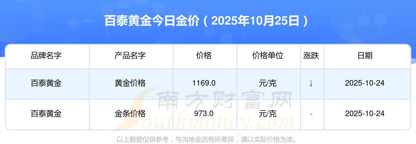 百泰黃金金價今天什么價格?今天_今日金價多少?(2025年10月25日)