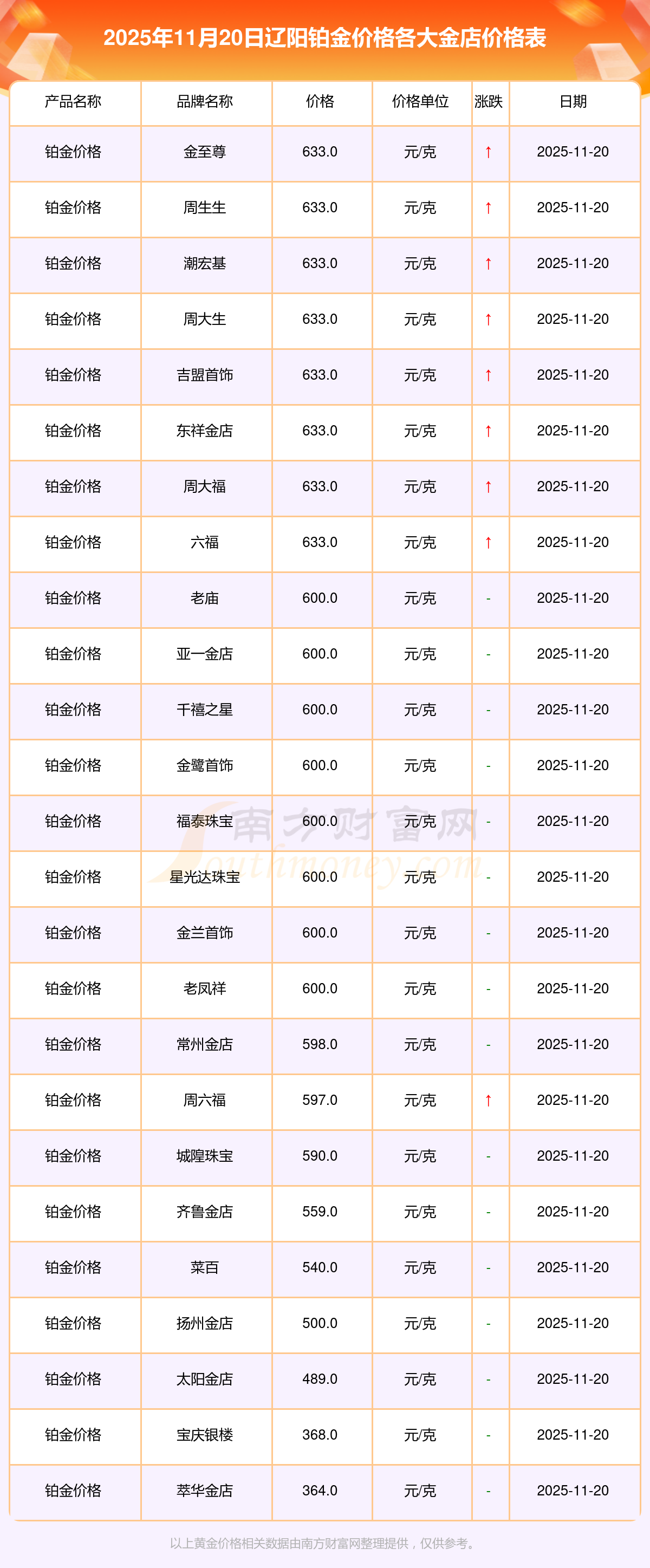 2025年11月20日,遼陽菜百、菜百、菜百、菜百、菜百、菜百、菜百、菜百、老廟、老廟、老廟等各大金店品牌鉑金價格今日價格行情最新來了:菜百540.0元/克、菜百540.0元/克、菜百545.0元/克、菜百552.0元/克、菜百1060.0元/克、菜百392.0元/克、菜百1270.0元/克、菜百11.8元/克、老廟1302.0元/克、老廟600.0元/克、老廟1257.0元/克。