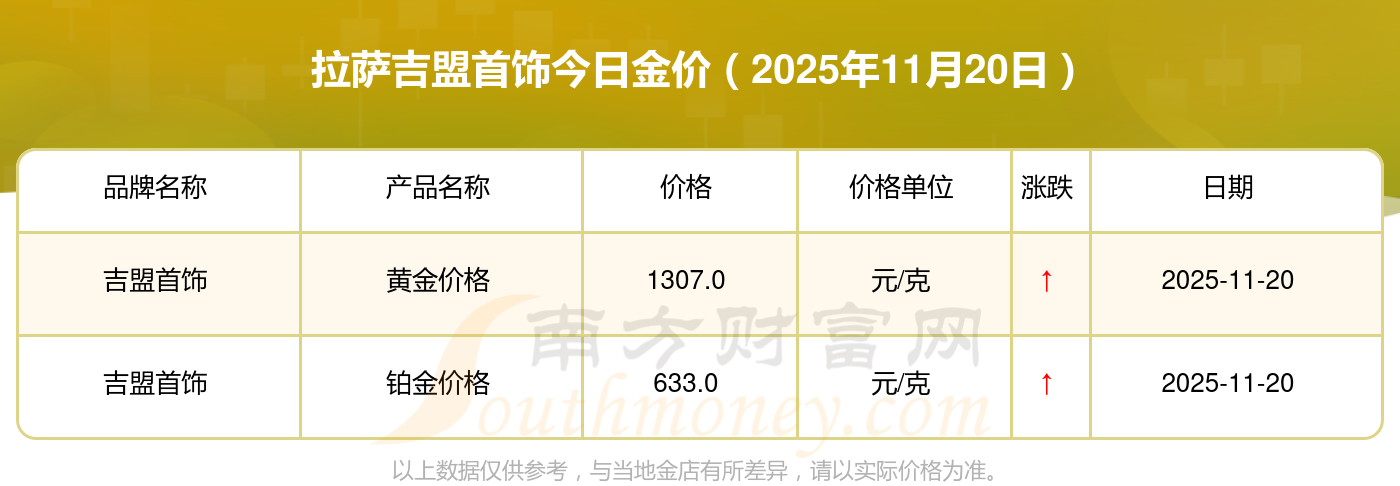 想知道今日黃金價格,目前黃金一克的價錢是多少呀?2025年11月20日拉薩吉盟首飾一克黃金對應(yīng)的價格是多少?鉑金價格540.0元/克,PT950鉑金540.0元/克,PT990鉑金545.0元/克,PT999鉑金552.0元/克,飾品金條價格1060.0元/克,擺件價格392.0元/克,足金價格1270.0元/克,基礎(chǔ)銀價11.8元/克,黃金價格1302.0元/克,鉑金價格600.0元/克,金條/金塊價格1257.0元/克。