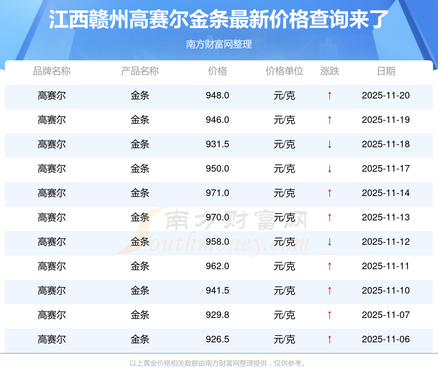 以上數(shù)據(jù)僅供參考,與當(dāng)?shù)亟鸬暧兴町,?qǐng)以實(shí)際價(jià)格為準(zhǔn)。