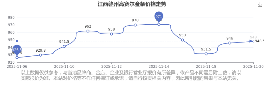 今日江西贛州高賽爾金條價(jià)格:948.0元/克。