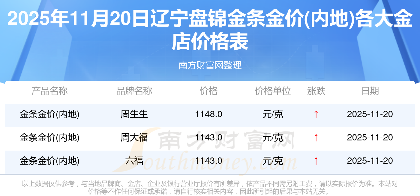 2025年11月20日,遼寧盤錦菜百、菜百、菜百、菜百、菜百、菜百、菜百、菜百、老廟、老廟、老廟等各大金店品牌金條金價(內(nèi)地)今日價格如下:菜百540.0元/克、菜百540.0元/克、菜百545.0元/克、菜百552.0元/克、菜百1060.0元/克、菜百392.0元/克、菜百1270.0元/克、菜百11.8元/克、老廟1302.0元/克、老廟600.0元/克、老廟1257.0元/克。