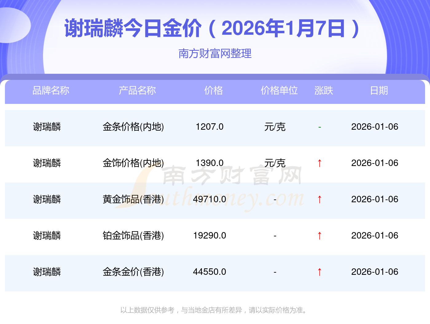 現(xiàn)在謝瑞麟黃金價格是多少錢1克_2025年謝瑞麟今日金價是多少錢一克,最新謝瑞麟查詢,2026年1月7日謝瑞麟金飾價格(內(nèi)地)現(xiàn)在每克多少錢?最新謝瑞麟金飾價格(內(nèi)地)報價公布,一起來看看吧!