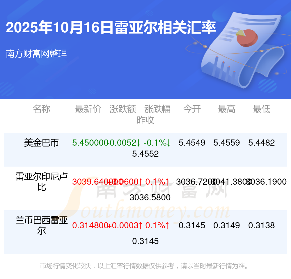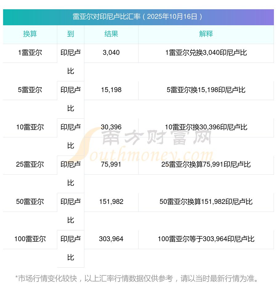 南方財富網(wǎng)為您提供雷亞爾對印尼盧比匯率最新價格詳情。
