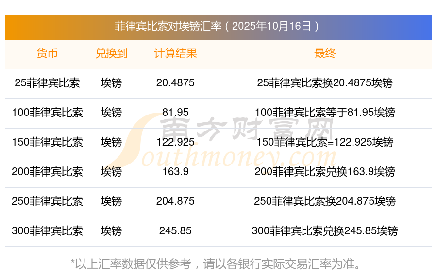 2025年10月16日菲律賓比索兌換埃鎊匯率是多少?