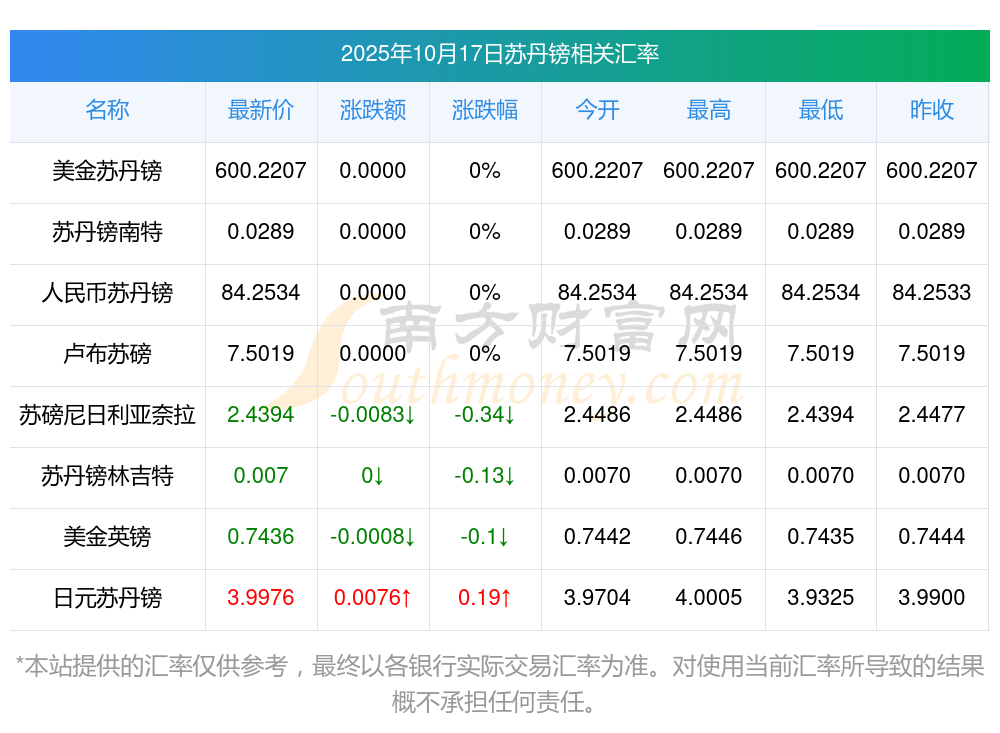 2025年10月17日蘇丹鎊相關(guān)匯率查詢