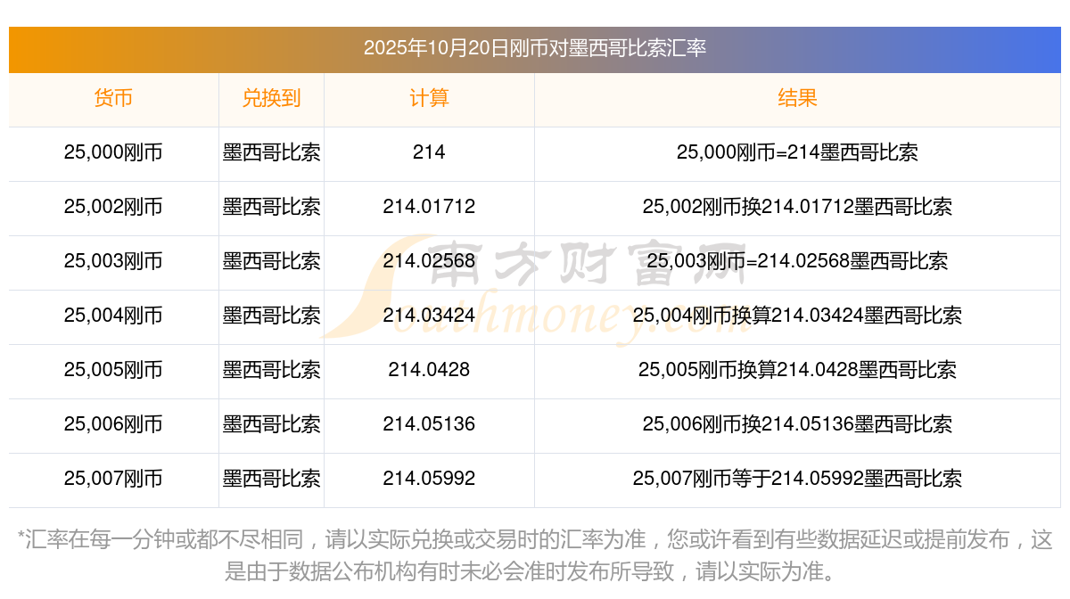 今天108剛幣兌換墨西哥比索是多少?2025年10月20日