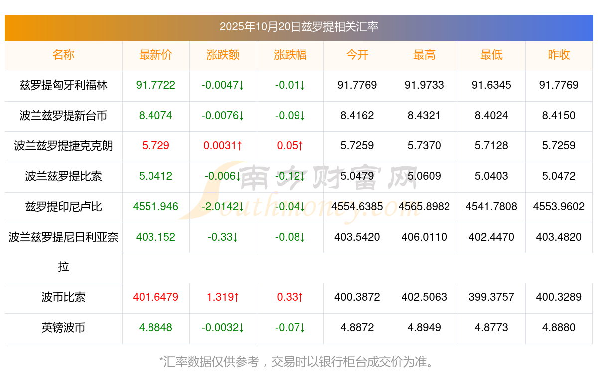 南方財富網為您提供茲羅提對港幣匯率最新價格詳情。