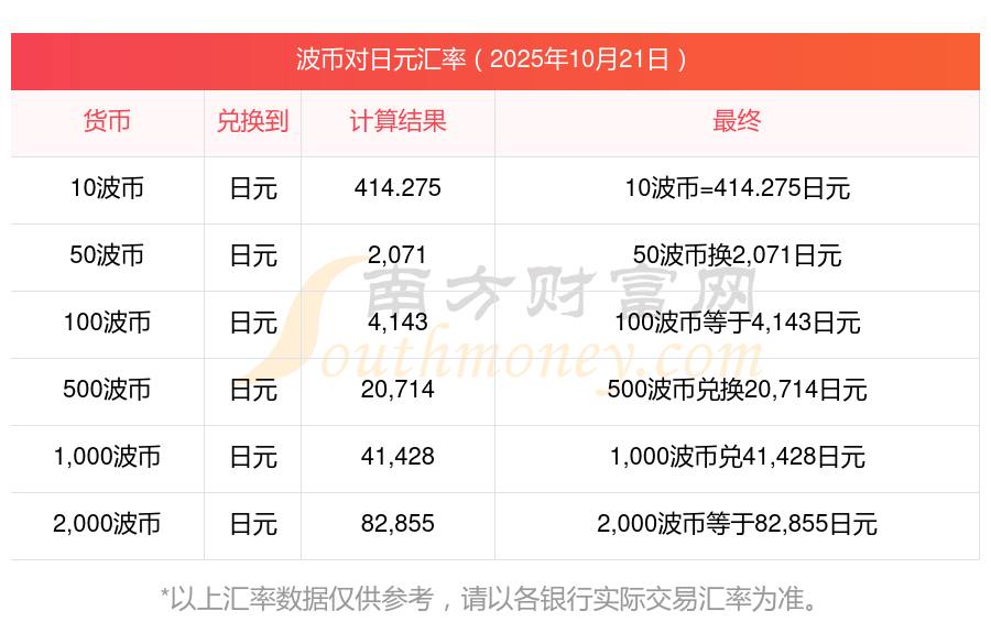 今天波幣對(duì)日元匯率多少?今日匯率計(jì)算方法10月21日