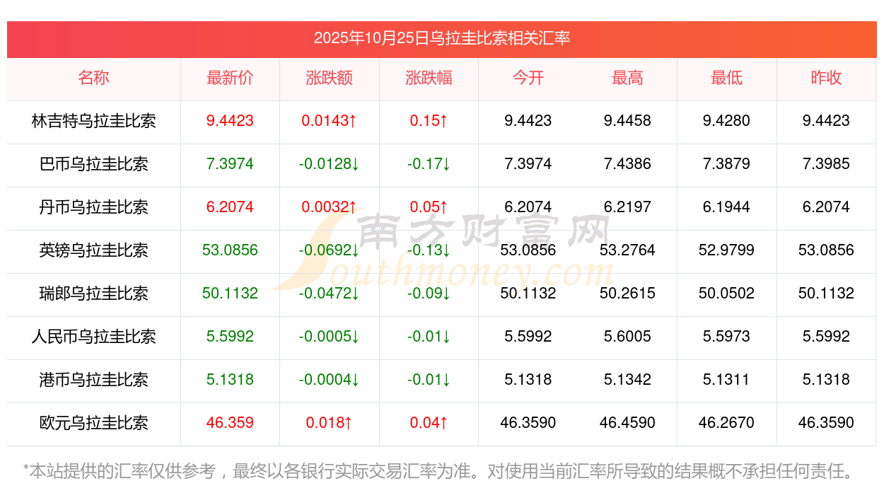 2025年10月25日烏拉圭比索相關(guān)匯率查詢