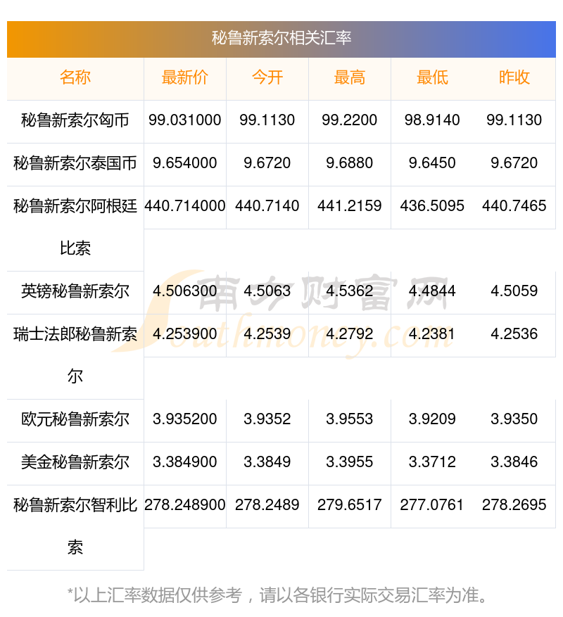 2025年10月25日秘魯新索爾相關(guān)匯率查詢