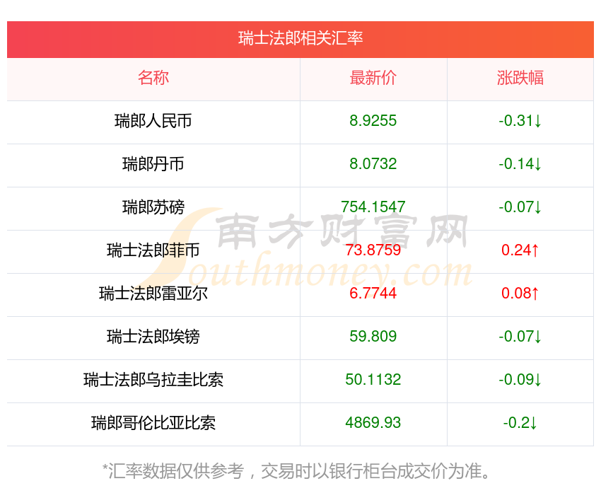 2025年10月25日瑞士法郎相關(guān)匯率查詢